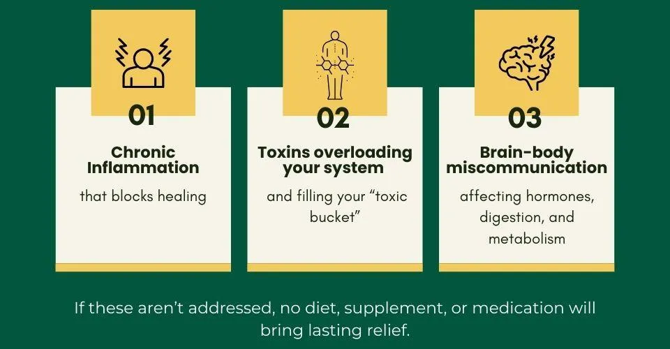 You can eat clean, exercise, and take supplements… but if your gut is inflamed and your toxic bucket is overflowing, your body simply can’t heal.